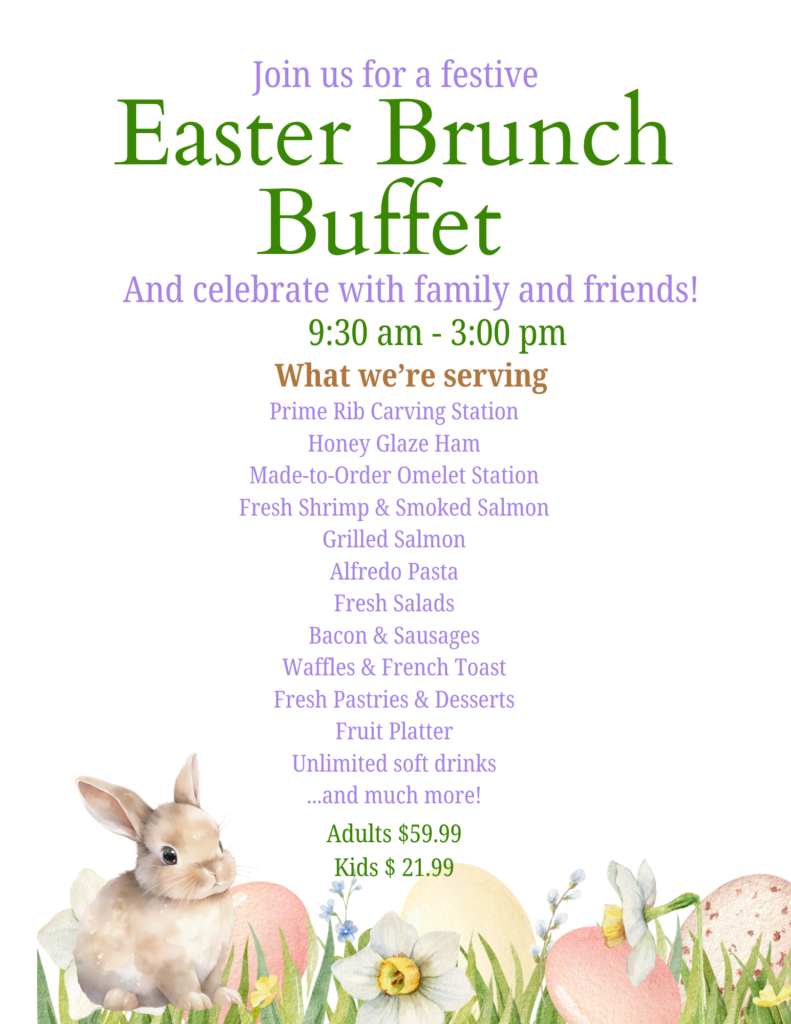 Join us for our 4th year hosting our Easter Brunch Buffet and enjoyed delicious seasonal favorites in a warm, festive setting.